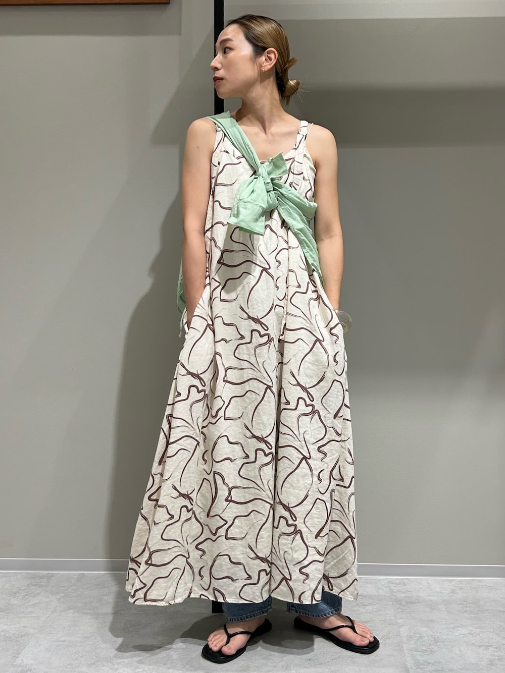 松岡奈瑠(Ungrid)のワンピース「リネン混ショルダーデザインキャミワンピース」を使ったコーディネート