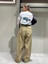 【トップス】 キャッチーな配色が可愛いです♡ゆったりめで157cmでお尻すっぽり隠れる丈感です。生地もしっかりめなので透け感もなく着やすいです。 【ボトム】 膝が立体感の出るシルエットに元々形が出来上がってる為、どの角度から見てもラインが綺麗に履いて頂けます!157cmであえてMサイズ着用です。ウエストのボタンを小さい方でとめベルトでしっかりあげ、4.5cmヒールでちょうど床に付く丈感です。