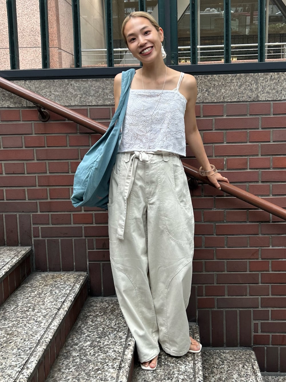 【トップス】 夏は1枚で着たり秋からは重ね着も楽しめるアイテム♡ シンプルだけどテープ刺繍なデザインもあり可愛いです。 【ボトム】 ボリュームのあるシルエットがかわいいパンツ。 デザイン性たっぷりなのでシンプルなトップスでもコーデ映えします♡ 157cmSサイズ着用でヒールなしで床スレスレなジャストな丈感です。ウエストのベルトで腰位置調整できるので華奢な方にもオススメです。