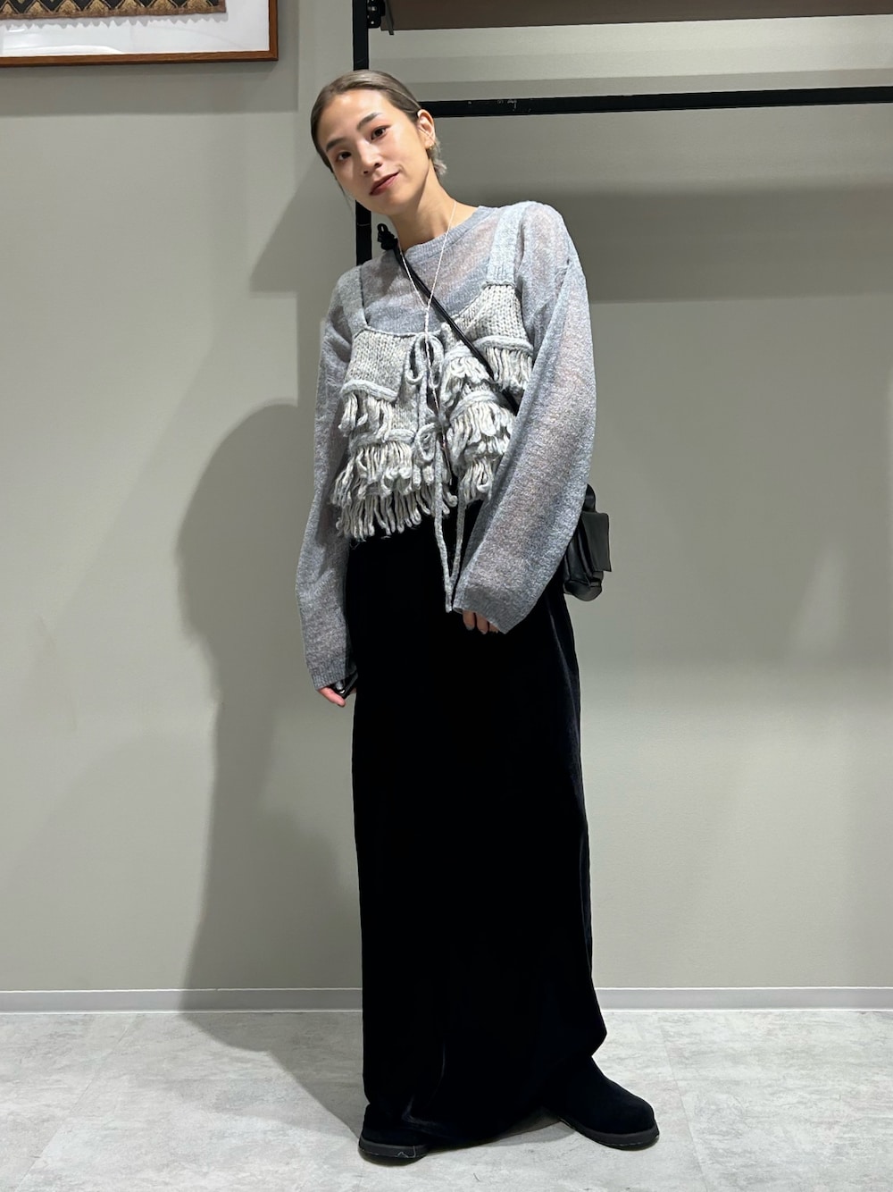 松岡奈瑠(Ungrid)のスカート「フィットベロアスカート」を使ったコーディネート