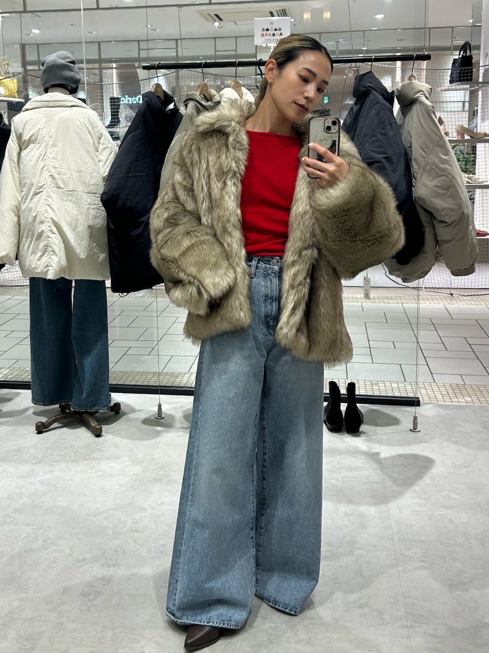 松岡奈瑠(Ungrid)のダウンジャケット/コート「ボリュームデザインファーコート」を使ったコーディネート