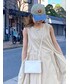 カラーアイテムにシンプルなベージュ合わせでバランス◎サイドで結び、スタイルアップできるコーデです!腰回りがあまり出ないシルエットなので骨盤が気になる方にもおすすめ!