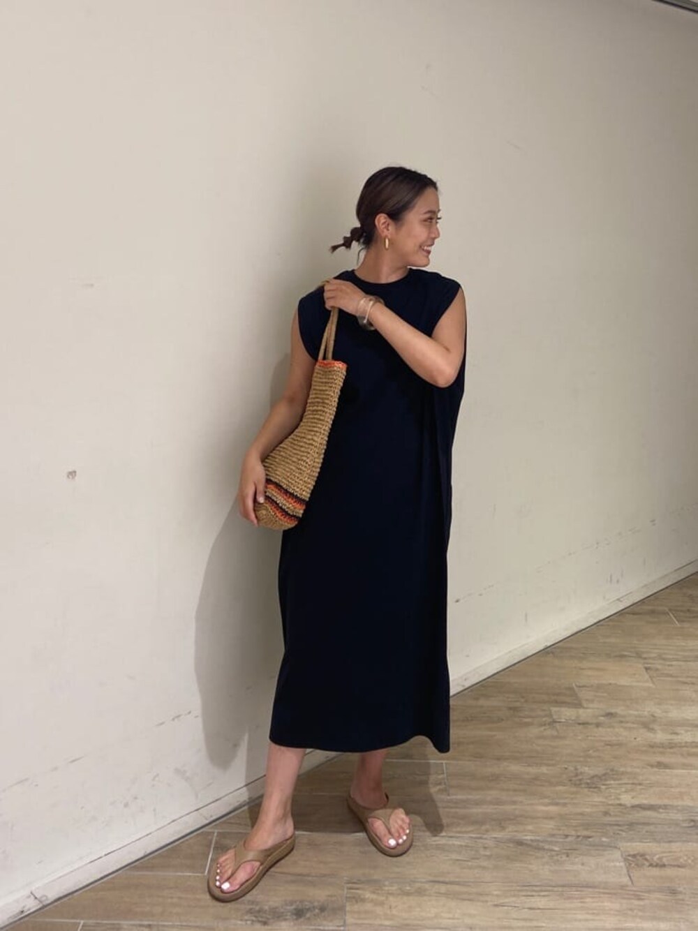 丈感がしっかりあるので長身の方までワンピース1枚で着れます。スッキリ丈にデニム合わせもバランス良くて◎丈が長いけどボトムを合わせたい方は、ベルトでウエストマークするとすっきりとした印象になります!!!