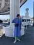 \プルオーバーのシャツワンピース/ カラー×カラーでトレンドコーデ! 167cmだとルーズなボトムのコーデでもすっきり! ロングだけでワンピース1枚で着ても可愛いです!