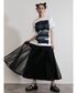 【T-shirt】 オーバーサイズが可愛いTシャツ。 程よくシンプル、オシャレなデザインのバランス感が絶妙✨ 袖をまくってみたり、裾を結んでみたりと色々なアレンジも楽しんでいただきたいアイテムです。 【skirt】 UN3D.の定番的なメッシュ素材を用いたスカート。立体的なパータンで生地をたくさん使ってますが、とても軽い✨ そして透け感があることでブラックでも重たくならずにご着用頂けます!