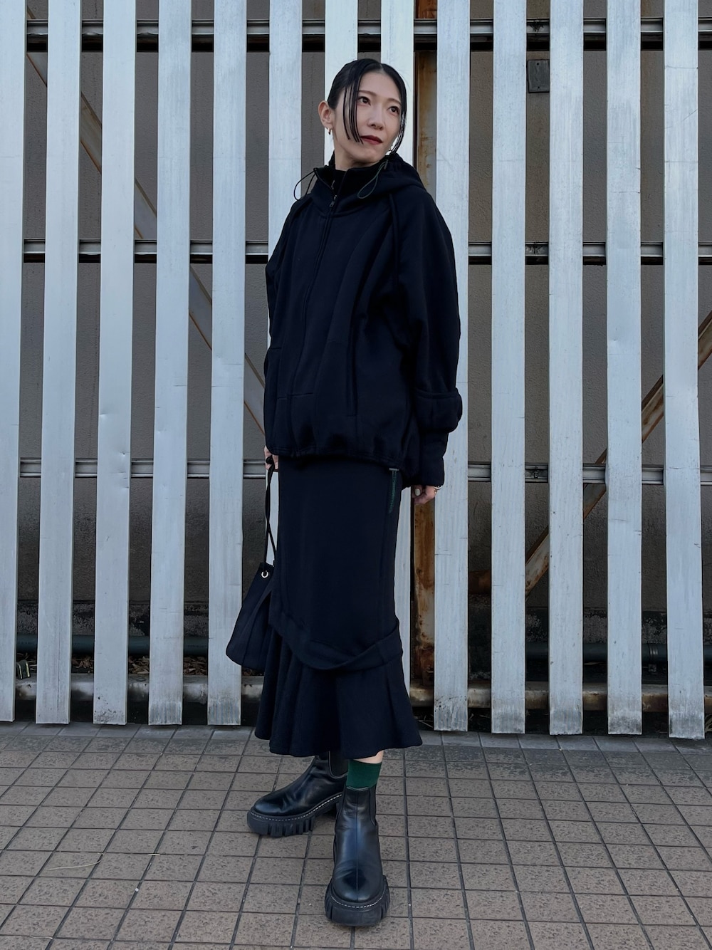YUKI(UN3D.)のパーカー「カーブラインジップパーカー」を使ったコーディネート