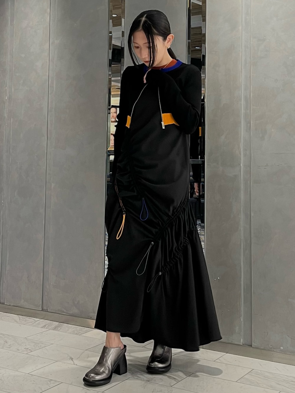 YUKI(UN3D.)のワンピース「COLOR CODE GATHER CAMI OP / カラーコードギャザーキャミワンピース」を使ったコーディネート