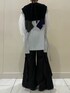 【シャツ】 パッと1枚着るだけでキマる、ニットベストがドッキングされているシャツ! シャツもピッチ幅が違うストラップ生地を組み合わせており、シンプルな使いやすさがありながらもオシャレ感がありとても使いやすいです。お尻が隠れる長め丈も安心◎ 【パンツ】 ウェーブ状のラッフルが裾に向かって広がるワイドパンツ✨ 程よく光沢のある素材がよりモード感を引き立ててくれます! 後はゴムなので履き心地も楽チンです!