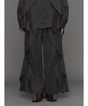 【シャツ・パンツ】 程よい光沢感としなやかさのあるタフタ生地を使用したシャツ。 珍しい襟付きタイプでよりキレイめな印象に✨ ウェーブ状のラッフルが裾に向かって広がって1枚でコーデがキマる今月のイチオシアイテムです! パンツもワイドなシルエットでラインもキレイ😍 後ろはゴムになっている為履き心地もバッチリです◎