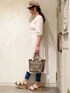 シルエットの美しさとバックレースアップがPOINTのコットンワンピース❤︎ 1枚で着ても可愛いワンピースですが、 フロント釦を開けてデニムをレイヤードすれば新鮮な大人カジュアルstylingも楽しめます♬ キャスケット・ビニールBAG・厚底サンダル等のトレンド小物でシーズンムードを盛り上げる着こなしがオススメです‼︎
