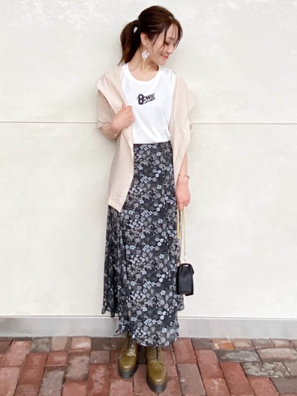 【David Bowie】別注のノースリTシャツは、 フロントロゴにさりげなくロックな主張があるitem☺︎ 柄が素敵なロングスカートと合わせて華カジュアルstylingに♬ 足元は重厚感のあるブーツ合わせが◎ ワンピース・スカートの展開がある【ウォールアートシリーズ】は、 芸術的価値の高いフランスのミュルーズ染織美術館が所蔵している貴重な資料を元に、デザインを厳選してアレンジを加えた特別なコレクション‼︎ 着用スカートは黒ベースにグレイッシュカーキやブルーがニュアンスで入ったヴィンテージな配色と柄で、stylingを格上げしてくれます◎ 新作のシアーなフード付きジャケットを羽織れば トレンド感とソフトな印象もプラスされる上に、後ろ姿まで抜かりナシ‼︎ "どこから見ても大人可愛い"が叶います❤︎
