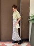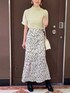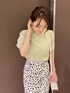 ドレープがキレイなレオパード柄スカートに、ふわふわのコンパクトニットを合わせた大人フェミニンstyling❤︎ 白みにくすませたミントグリーンをモノトーンコーデに指して、MERCURYDUOらしいカラーアクセントに♬ シルエットの美しさにも拘ったトップスとスカートなので、 足元はソックスブーツでタイトにまとめました☺︎