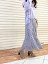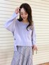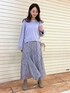 ラベンダートーンのニュアンス違いを楽しむ、大人なカラーコーディネート☑︎ オリジナルの繊細なスカーフ柄が素敵なスカートは、 ベースはフレアラインで中間からマチも入っているので、動きに沿って揺れ感がキレイに出ます❤︎ ゆるニットを合わせればカジュアルダウンもできてお洒落な印象に♪ 気分を上げたい日や女子会にもおすすめなstylingです☺︎