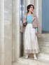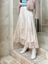 総レースとたっぷりしたフレアラインがエレガントなロングスカートは、一点投入で華やかに♪ アイボリー〜ベージュトーン+ミントグリーンのトップスを差し色にして、柔らかで爽やかな印象に仕上げました☺︎ トップスは華奢ネックレス付きで女性らしさUP⤴︎ きちんと感もある好感度◎なstylingなので、デートやオフィスシーンにもオススメです☑︎