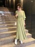 一枚で決まる美シルエットワンピース❤︎ MERCURYDUOらしい華やかさと大人っぽさのあるくすみパステルは、 室内の照明や太陽の下でも映えて、顔色も明るく見せてくれます‼︎ 上半身はフィット・下半身フレアのメリハリシルエットでスタイル良く◎ スカート部分がマチを持たせたリブニットになっていて、量感のあるロング丈→揺れ感に重みが出てエレガントな印象に♪ ブラウス生地で切替られたボリューム袖で、MERCURYDUOらしい大人な甘さもプラス☑︎ 可愛らしさも上品さも欲しい、大人女性におすすめな一枚です☺︎