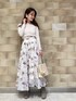 MERCURYDUOオリジナルのアートっぽい水彩柄が素敵なフレアスカート❤︎ エアリーで落ち感のあるフワっと広がる素材と、裾にかけてたっぷり広がるロング丈がエレガントな印象です♪ ウエストのタックギャザーデザインもPOINTになっていて、タイトめなトップスをinするとスタイルUPが叶います☑︎ ホルターネックデザインのトップス・ニットブーツ・ミニバッグ付トート・クリア素材イヤリングを合わせて遊び心を加えました♪ トップス・小物にトレンド感たっぷりなので女子会にも◎ですし、 大人フェミニンな華やかstylingなのでデートやお出かけにも◎ 6枚目〜のように、とろみあるトレンチコートを合わせた春らしいstylingもオススメです☺︎