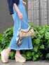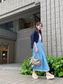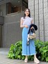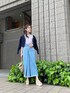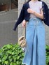 春夏らしいライトブルーが爽やかなデニムスカートコーデ♡ ラベンダーのブラウス、締め色にネイビーのカーディガンとスカーフ、アイボリー〜ベージュ系のbagとサンダルで大人可愛くまとめました♪ 女性らしいカジュアルstyleがお好きな方には勿論、デニムが苦手なフェミニン好きな方にも挑戦して頂きたいstylingです☺︎ 【ブラウス】 プリーツが繊細な印象のシアーブラウス。 インナー付で透け感がそのまま楽しめます♪ ヒラっとしたお袖がフェミニンながら、ハイネックで端正な表情も◎ デニムやパンツ合わせ、ジャンスカのインナー等のカジュアルitemとのミックスコーデがオススメです。 【スカート】 レースアップデザインがPOINTのデニムスカート。 後ろに幅広のシャーリングゴム入りで、レースアップをキュッと結ぶと相乗効果でウエストがくびれて見えます⤴︎ 裾のフリンジもお洒落見え◎ ケミカルウォッシュで柔らかく軽い生地に仕立てていて、履き心地も抜群です‼︎ カラーやタイトシルエットにフェミニンさがあるので、Tシャツやニット等を合わせたカジュアルstylingも女性らしさが叶います♪