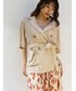 \ グリーンの柄パンツで大人なお洒落カジュアルstyling♡ / 夏の日差しにも映えるグリーンが新鮮‼︎ MERCURYDUOオリジナル柄が目を引くカラーパンツを主役にしました☺︎ トップスとボトムを濃淡グリーンにして、統一感のあるカラーコーディネートに♪ 軽ジャケット・ぺたんこサンダル・チェーンbagと、グリーン以外の合わせをベージュにして大人っぽいカジュアルstyleを意識しました♡ 明るい気分にさせてくれる華カジュアルコーデなのでお出かけには勿論、デイリーユースにもオススメです⤴︎ 【ジャケット】 これからの季節に便利な、シャツ感覚で取り入れられる軽ジャケット。 MERCURYDUOの羽織りには珍しい、5分袖が軽快で涼しげです♪ ウエストマークできる共布ベルト付なので、フロントで結んでトップス感覚でも◎ ベルトをバックリボンにして、羽織った時の後ろ姿をPOINTにするのも◎ 【トップス】 MERCURYDUOで定番人気のネックレス付ニット。 ネックレスが揺れる後ろ姿が印象的♪ サラッ&モチっとした肌心地抜群な生地が、着ていて気持ちの良いサマーニットです‼︎ ウォッシャブルなのも嬉しいPOINT☑︎ ノースリーブですが肩口まで長さがあり、ピタッとしすぎないシルエットで着痩せして見せてくれます♡ 【パンツ】 トレンドのジオメトリック柄を繊細な小柄と同一のカラートーンで、MERCURYDUOらしく大人フェミニンに落とし込んだワイドパンツ。 ハイウエストでスッキリ→腰回りからはタックフレアがしっかり入っていて、生地をたっぷり使っているのが特徴です‼︎ とろみもあって動いた時のシルエットが表情豊か♪♪ 共布のサスペンダーとウエストベルトが付属していて、 サスペンダーはキャミ型・バッククロス・センターバックの紐通しを使って後ろVにも...と3通りに結べます。(ラフに垂らしても可愛いです♡) サスペンダーを取り外してベーシックなパンツとしても◎+付属ベルトでウエストマークも◎