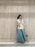 \ グリーンの柄パンツで大人なお洒落カジュアルstyling♡ / 夏の日差しにも映えるグリーンが新鮮‼︎ MERCURYDUOオリジナル柄が目を引くカラーパンツを主役にしました☺︎ トップスとボトムを濃淡グリーンにして、統一感のあるカラーコーディネートに♪ 軽ジャケット・ぺたんこサンダル・チェーンbagと、グリーン以外の合わせをベージュにして大人っぽいカジュアルstyleを意識しました♡ 明るい気分にさせてくれる華カジュアルコーデなのでお出かけには勿論、デイリーユースにもオススメです⤴︎ 【ジャケット】 これからの季節に便利な、シャツ感覚で取り入れられる軽ジャケット。 MERCURYDUOの羽織りには珍しい、5分袖が軽快で涼しげです♪ ウエストマークできる共布ベルト付なので、フロントで結んでトップス感覚でも◎ ベルトをバックリボンにして、羽織った時の後ろ姿をPOINTにするのも◎ 【トップス】 MERCURYDUOで定番人気のネックレス付ニット。 ネックレスが揺れる後ろ姿が印象的♪ サラッ&モチっとした肌心地抜群な生地が、着ていて気持ちの良いサマーニットです‼︎ ウォッシャブルなのも嬉しいPOINT☑︎ ノースリーブですが肩口まで長さがあり、ピタッとしすぎないシルエットで着痩せして見せてくれます♡ 【パンツ】 トレンドのジオメトリック柄を繊細な小柄と同一のカラートーンで、MERCURYDUOらしく大人フェミニンに落とし込んだワイドパンツ。 ハイウエストでスッキリ→腰回りからはタックフレアがしっかり入っていて、生地をたっぷり使っているのが特徴です‼︎ とろみもあって動いた時のシルエットが表情豊か♪♪ 共布のサスペンダーとウエストベルトが付属していて、 サスペンダーはキャミ型・バッククロス・センターバックの紐通しを使って後ろVにも...と3通りに結べます。(ラフに垂らしても可愛いです♡) サスペンダーを取り外してベーシックなパンツとしても◎+付属ベルトでウエストマークも◎
