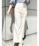 \ ちょっとハンサムなキレイめホワイトコーデ♡ / 新作のニットトップス×花柄スカートのSET item、アイボリーカラーを着回します⤴︎ 第二弾はニットトップスを着回した、キレイめパンツコーデ☑︎ (そのままSETで着こなした前回のstylingも是非ご覧下さい♡) スッと切長な縦長Iシルエットにまとめたワントーンコーデにしたので、エッジの効いた印象に♪ ホワイト系でまとめつつ、オレンジのスカーフでヘアアレンジして華やかに。 パンツに付属しているブラウンの細ベルトでウエストマーク。 クリアバッグや雑材サンダルでシーズンムードをプラス。 小物遊びでメリハリを効かせました! まろやかカラーで女性らしさをキープしながら、ちょっとカッコよく♡ 気分転換したい時やイメージチェンジにいかがでしょうか?☺︎ 【トップス】 モチモチした肌触りが気持ち良いニットトップス。 お尻まで隠れる長さ・ストンとしたシルエット・肩口まで覆う長めのノースリーブで、体型カバー効果も◎ ユルッとしたサイズ感でストレスフリー♡ サラサラ生地でノースリーブなので、暑い夏も快適に過ごせそう♪ 前後Vネック開きと、裾のサイドスリットでスッキリ見えも叶います☑︎ 付属の共布ベルトを使ってブラウジングすれば 丈の長さもアレンジOK。 着回しはSET itemのようにシャラっとしたスカートでフェミニン、タイトスカートでキレイめ、デニムパンツでカジュアル等...沢山のシーンで活用できるitemです。 【パンツ】 MERCURYDUOの歴代パンツの中でも美脚効果が話題になっているフレアパンツ! ウエスト〜腰回りは程よくフィット→膝から流れるようにフレアに広がるシルエットがエレガント♡ リネンライクな生地で仕立てていて、シーズンムードも通気性も◎ シワになりにくい素材なので、デスクワークにも◎ キチンと感もあるので通勤服としてもオススメです☑︎ ハイウエストで華奢なベルト付きなので、 ブラウスやコンパクトニット等をトップスinしたstylingもバッチリ決まります⤴︎