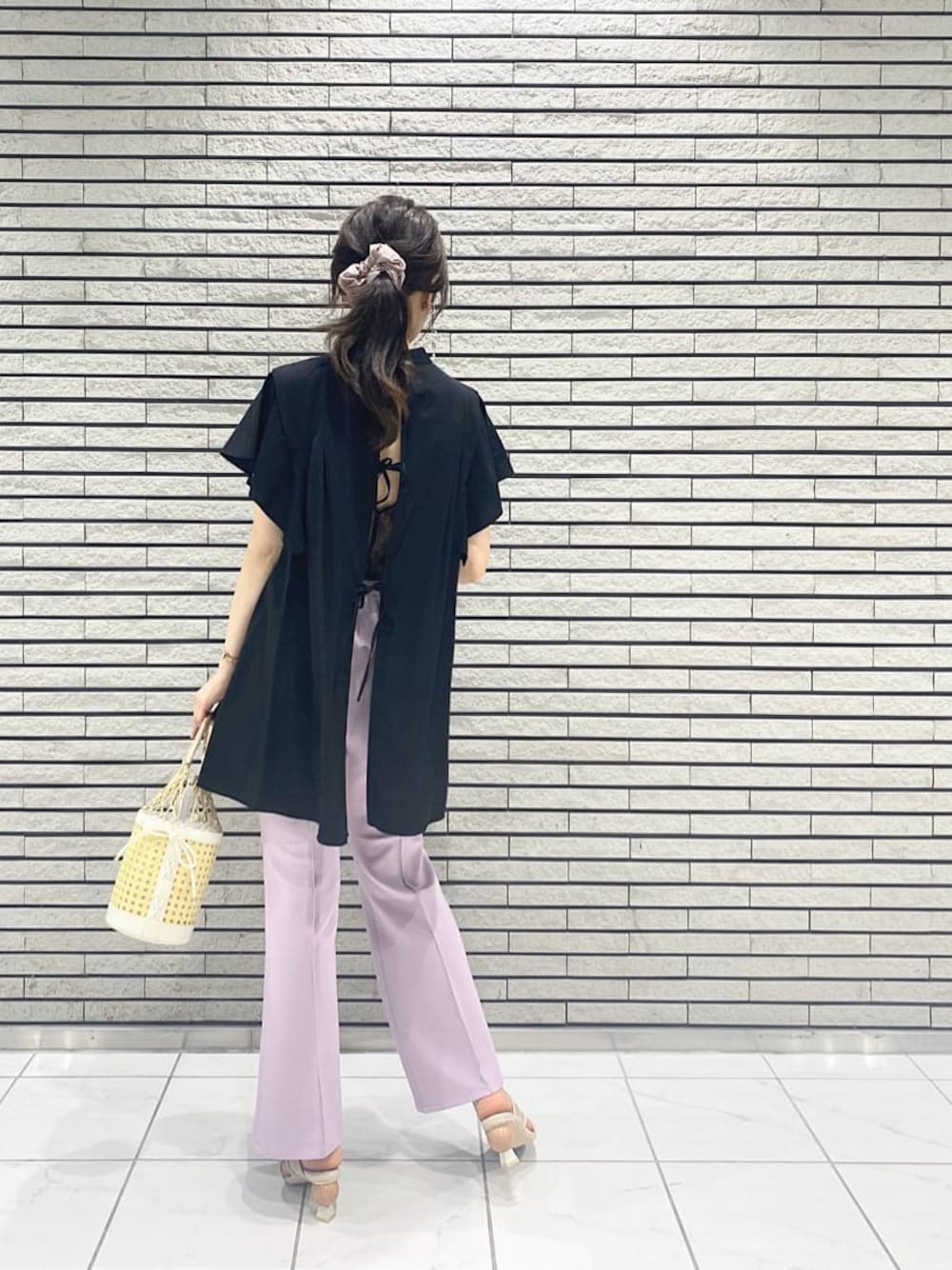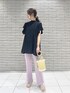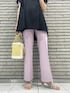 \ 大人フェミニンなパンツコーデ♪ / デートにもオススメな女性らしいパンツstyling♡ ブラックのブラウスとラベンダーのパンツで大人の可愛らしさを表現しました☺︎ 明るめカラーの夏雑貨を合わせてシーズンムードもプラス☑︎ チュニック丈ブラウスときれいめパンツの王道な組み合わせですが、シルエットやディテールに拘っていてお洒落見え度も高いので、デイリー〜女子会にも◎ ラクでお腹周りもすっぽり隠れるので、リラックスしたい気分の日やお食事の時にも◎ 【ブラウス】 夏に嬉しいサラサラ生地のチュニックブラウス♡ フレアスリーブとタック遣いでふんわりしたシルエットですが、生地にトロンと落ち感があって着痩せして見せてくれます♡ フロントはボトルネックで上品さがありつつ、バックシャンな後ろ姿に良い意味でギャップがあるのがPOINT⤴︎ バックリボン・バック開きを活かした、レースキャミ等デザイン性のあるインナーとのレイヤードstyleがオススメです☑︎ 【パンツ】 美しいシルエットとカット素材のラクさを兼ね備えたパンツ♡ MERCURYDUOのパンツ史上No.1の伸縮性・肌あたりの気持ち良いモチモチした質感が、手放せなくなりそうな一枚です☺︎ センターに入った切替で縦長効果+ウエスト〜ヒップにかけて程よく身体に沿い、膝〜裾にかけて緩やかなフレアになったシルエットで美脚効果抜群⤴︎ 裏地は付いていませんが、中厚のカット生地で透けにくくて通気性も◎手洗いOKのイージーケアなのも高POINT☑︎ ツルっとしていてカット素材でもきちんと感もあるので、オフィスシーンにもオススメです♪