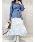 【骨格ウエーブさん向けフェミニンstyling♡】 前後2Wayカラーニットと線画花柄の白スカートがSETになったお得item♡ こちらを使った骨格・テイスト別、おすすめ着回しstylingをご紹介します! ウエーブさんは下重心の華奢BODY。肌質もソフトで柔らかいので、フェミニンstylingがお得意♡ 華やかさをプラスする足し算コーデが◎ →→→ SETをそのまま着用して、付属ベルトを胸下でリボン結びにすることで、華奢な上身をデコレーション!フロントパール飾りもPOINTに♪ ハイウエスト+フィット・フレアラインで、下重心をスッキリ見せてスタイルUP⤴︎ エアリーになびくスカート・白ブーツとボアbagでとことん女性らしくまとめました。 アウター合わせは上身にコロンとした丸みが出て可愛らしい白ショートダウンがオススメです♡ 〈ウエーブさん以外の似合わせ〉 私はストレート体型ですが、ウエーブっぽい雰囲気にする為に、曲線を意識したゆる巻きダウンヘアーに。 ピンクメイクにする、華奢な揺れるイヤリングを付ける事でバランスを取りました。 ウエーブさんの柔らかい肌質を演出する為に、ベースメイクはパウダーファンデでふわっとさせて印象を寄せました☑︎