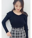 村岡愛美(MERCURYDUO)のニット/セーター「ロングスリーブ2WAYラッフルコンパクトリブニット」を使ったコーディネート