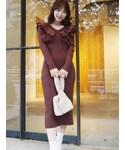 \ 可愛さも大人っぽさも叶う、スタイルUPワンピース♡ / 大振りのラッフルデザインがPOINTのニットワンピース♡ 着用した赤みブラウンは温もり感ある大人なカラー☑︎ イエローベージュのレースアップブーツで足元にアクセントを加えて、女子会にもオススメなコーディネートに仕上げました☺︎ ワンピースは胸元から肩口にかけてのラッフルにボリュームがありますが、スッキリしたIライン・デコルテ開き(今回はオンショルで着用してますが、オフショル2WAYデザインです)・高めのウエスト切替のコントラストでスタイルUPが叶います⤴︎ 女性らしいボディーラインを演出してくれるので、 デートにもピッタリ◎ 生地に伸縮性があり、バック裾にスリット入りなのでタイトめなワンピースでも動きにくさナシ! 被りで一瞬で着れる楽ちんさなので、デイリー遣いにもお役立ちな一枚になるはず♪