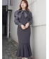 \ 大人が楽しむトレンド×キレイめコーデ♡ / 黒に比べるとエレガントさ・女性らしさを感じさせるダークカラー、グレイッシュなネイビーのニットワンピースを主役にしました!白みのライトグレーのライダースジャケットと白ブーツを合わせて、大人の品格と知性を感じるカラーコーディネートに♡ 落ち着いた配色ですが、ワンピースにデザイン性があるので華やかな印象です⤴︎ 大切なパートナーやご友人から大人っぽく見られたい時やイメチェンにも◎ 今回は春コーデっぽくライダースを合わせましたが、 ショートダウンやチェスターコート等の冬アウター合わせで今からデビューできるコーデです☑︎ 【ワンピース】 シアーなパワショルブラウスと、マーメイドシルエットのニットワンピースのドッキングアイテム。 トレンド感抜群ながら、大人っぽい上品さを兼ね備えた一枚です! 前後2WAYなので、可愛らしくしたい時はフロントリボン/大人っぽくしたい時はバックリボン...と気分によって着こなしできます♡ 【ライダース】 MERCURYDUO自慢のスタイルUPアウター。 コンパクトフォルムで、合わせるお洋服も選びません! リアル見えするフェイクスエード素材は高級感もあり、着ると「柔らかくて軽すぎる‼︎」と感動される方が多数♡ 今から冬アウターの下にインナーダウンのように、分厚いシャツ感覚で忍ばせるのも◎