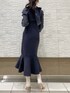 \ 大人が楽しむトレンド×キレイめコーデ♡ / 黒に比べるとエレガントさ・女性らしさを感じさせるダークカラー、グレイッシュなネイビーのニットワンピースを主役にしました!白みのライトグレーのライダースジャケットと白ブーツを合わせて、大人の品格と知性を感じるカラーコーディネートに♡ 落ち着いた配色ですが、ワンピースにデザイン性があるので華やかな印象です⤴︎ 大切なパートナーやご友人から大人っぽく見られたい時やイメチェンにも◎ 今回は春コーデっぽくライダースを合わせましたが、 ショートダウンやチェスターコート等の冬アウター合わせで今からデビューできるコーデです☑︎ 【ワンピース】 シアーなパワショルブラウスと、マーメイドシルエットのニットワンピースのドッキングアイテム。 トレンド感抜群ながら、大人っぽい上品さを兼ね備えた一枚です! 前後2WAYなので、可愛らしくしたい時はフロントリボン/大人っぽくしたい時はバックリボン...と気分によって着こなしできます♡ 【ライダース】 MERCURYDUO自慢のスタイルUPアウター。 コンパクトフォルムで、合わせるお洋服も選びません! リアル見えするフェイクスエード素材は高級感もあり、着ると「柔らかくて軽すぎる‼︎」と感動される方が多数♡ 今から冬アウターの下にインナーダウンのように、分厚いシャツ感覚で忍ばせるのも◎
