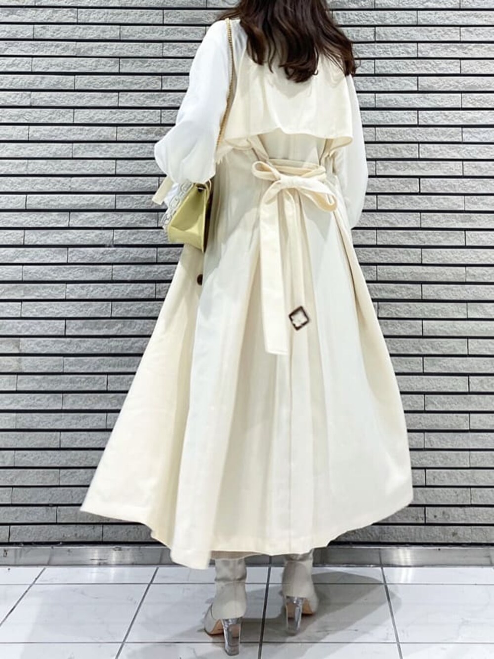 \ 透け感が可愛い♡ 春気分のシアートレンチ / (トレンチを脱いだstyling・他の着用 itemについては次に更新するので、そちらも是非ご覧ください♡) 異素材スリーブがトレンドライクなトレンチコート。 軽やかなツイル生地をベースにシアー素材の袖デザインがお洒落♪ほぼ同色のドッキングなので、デザイン性がありながら着回しやすいのがPOINT☑︎ 袖口にはゴムが入っていて、ふんわりスリーブが可愛らしい♡ 大きめのヨークとボックスタックで後ろ姿も抜かりない一枚です⤴︎ 〈着回し〉サラッとした着心地なので、袖を上げればゴールデンウィーク手前くらいまで...厚手のトレンチより長く着て頂けます☑︎ 袖ぐりに余裕もあるので、肌寒い時期は厚みのあるニットや裏起毛パーカーをレイヤードするのも◎ 春はMERCURYDUOらしくフェミニンな布帛ワンピースと合わせても◎ きれいめ〜カジュアルまで、あらゆるテイストのstylingと相性の良い万能アウターです♡