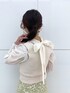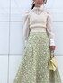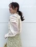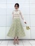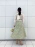 \クリアな春カラーが華やかなスカートstyling♡/ ホワイトトップス×ミントグリーンスカートの春配色が爽やか♡ フィット&フレアシルエットでメリハリがあり、女性らしく華やかな印象に♪ ベージュのパンプス・コンパクトなイエローbagで華奢な小物合わせにして大人フェミニンに仕上げました。 ウキウキするパッと明るいカラーコーディネートは、春のお出かけや女子会にオススメです☺︎ 【トップス】 トレンド感あるシアーなパワショルブラウスと、ニットベストがドッキングされたデザイントップス。 アクセントのリボンはフロントでもバックでも楽しめる前後2WAYデザインが嬉しい♡ 短丈で、ウエストリブが効いているので、アウトスタイリングもバランス良く決まります⤴︎ きれいめなタイトスカートやパンツでクラシカルな通勤などのONコーデにも◎ 【スカート】 凹凸のあるジャカード生地が華やかな、主役級のフレアスカート。 中間からさりげなくタックが入っていて、 裾に向かって広げることで腰回りはスッキリと、 たっぷりフレア感のあるシルエットが特別感◎ とても柔らかくて軽い生地+バックウエストゴムで、 ストレスフリーな着心地です! いつものMERCURYDUOのスカートよりウエストにゆとりがあるサイズ感です☑︎(162㎝・細身の骨格ストレート/Sサイズ着用)