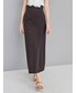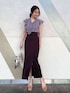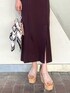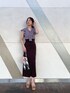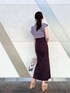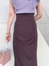 \シックなニュアンスカラーで大人の夏コーデ♡/ くすみラベンダーのようなグレーのニットトップス×パープルニュアンスのあるダークなブラウンのスカートで、大人っぽいカラーコーディネート。 カラーはシックにstylingしていますが、 甘さのあるトップス、ピンクのミニbag、ウエッジサンダル...とitem合わせで大人フェミニンにまとめました♡bagに合わせた柄スカーフもアクセントに⤴︎ 大人女性の夏のお出かけstyleとしてオススメです☺︎ 【トップス】 ラッフルスリーブ・ボウタイデザインがPOINTのコンパクトニット。 サラッとしたサマーニットで着心地も良く、 春はアウターの中にボウタイを覗かせて、夏は一枚で...これからの季節に大活躍してくれる一枚です♡ 裾がリブになっているので、ボトムINもスッキリ決まります! 【スカート】 ストンとしたIシルエットのスカート。 ストレッチの効いた素材と、ウエストのバックゴムシャーリングで履き心地抜群です! さり気ないフロントスリットで抜け感があり、足さばきも軽快に♪ シンプルながらMERCURYDUOらしいニュアンスカラーの展開で、着回し力・オシャレ見えが両方とも叶う一枚♡ ウエストはゆったりめですがハイウエストのお作りなので、 ウエストが細めの方でも高い位置で留まってくれます! (162㎝/骨格スカートの私はSサイズ着用でピッタリ。Mサイズだと+4㎝丈でゆとりがありました☑︎)