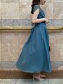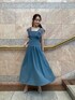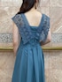 \ON・ OFF着映えるフェミニンドレス☺︎/ MERCURYDUOオリジナルのレースラッフルがPOINTになった、お呼ばれ対応ドレスは展示会人気No.1 item♡ アクセサリーやパンプス合わせで結構式など華やかなシーンにも◎落ち着いた品格あるグレイッシュなブルーは、レディな印象に♪ (色違いのブラックをシアーシャツやペタンコ靴でデイリーにカジュアルダウンした着こなしもUPしてるので、そちらもチェックして下さい♡) 【ワンピース】 上品な落ち感ジョーゼット素材のロングドレス。胸下からヒップにかけてボディラインに沿い、裾にかけてフワッとタックが広がるデザインでスタイルアップ効果◎ 胸元から肩口にかけてのレースラッフルが繊細で、フェミニンなアクセントになっています♡ 長めのバックリボンが歩く度になびいて後ろ姿もPOINTに♪ 今回はスッキリきれいめに着たくてSサイズ着用(162㎝)。Mサイズで3.5㎝違い・くるぶし上くらいで、こちらもバランス良かったので160㎝前後の方だと着用感のお好みでサイズを選ぶと◎