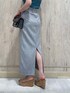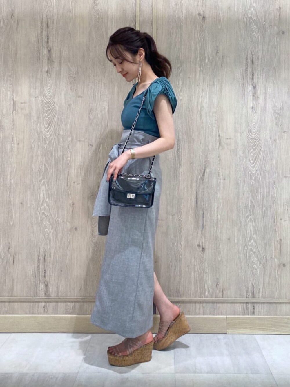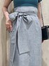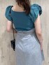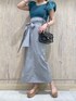 \大人カジュアルな夏カラーコーデ♡/ モノトーン+トレンドカラーのグリーンを差し色にした、夏のデイリーユースやお出かけにもピッタリな大人カジュアルコーデ。 着用したスカートのカラーは表記がブラウンですが、 生地にブラウンの糸が使われているものの全体的にはグレーっぽい見え感です! クリア素材のバッグとサンダル合わせでシーズンムードを盛り上げる着こなしに♪ スッキリとしたYシルエットでスタイルUP効果も◎ 【ニット】 異素材のハリのあるギャザースリーブがアクセントになったサマーニット。 コロンとしたお袖のシルエットとスッキリした身頃のコントラストがお洒落な一枚です! Vネックとスクエアネックの前後2WAYで着用可能◎ 【スカート】 少し表面感と艶感があり、伸縮する素材が特徴的なスカート。 サラサラとした薄手の生地ですが、裏地もついていて透け感を気にせずに涼しく着用できる一枚! ベーシックなIラインと着心地の良さでヘビロテ間違いナシ♡ 太目の付属ベルトは半分に折り、後ろで大きなリボンを作るのも◎ 着用したMサイズはウエストが少しゆったりめですが、ベルトでウエストをキュっと絞れば問題なく着こなせました☑︎(S/Mサイズでウエスト5㎝差・丈3㎝差です) ベルト通しも付いているので、革ベルト等にチェンジしてイメージを変えた着こなしも◎