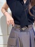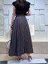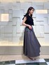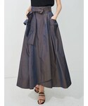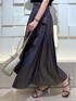 \通勤にも♪ダークトーンにときめく夏の大人クラシカルコーデ♡/ ブラック〜ブラウン落ち着いたダークカラー・甘さのあるフィット&フレアシルエットで、大人可愛いスカートコーデを組みました♡ 光の当たり方で色のニュアンスが変化して見えるスカートがお洒落で、気分を上げてくれること間違いナシ‼︎ 華奢なメッシュサンダルとレザー切替のペーパーbagを合わせて程よくトレンド感も入れ込みました☑︎ きちんと感もあるので OFFはもちろん、オフィスカジュアル等のONコーデとしても◎ 【トップス】 控えめなラッフル袖・すっきりしたV開きのボウタイデザインがPOINTになったコンパクトなサマーニット。 裾がリブ切替になっていて、ウエストinしてももたつきにくく、outで着こなしてもウエストマークしたような仕上がりに◎ 【スカート】 腰回りスッキリ、贅沢に広がるフレアシルエットが美人オーラ溢れるクラシカルなスカート♡ ハリのある落ち感素材なので、フレアが着太りして見えて苦手とされる骨格ストレートさんにもオススメできるスカートです! 着用したブラウンは裏糸の色が異なるシャンブレー素材で、光の当たり方で色が変わって見える特別感ある仕様♪♪ アウトポケット付・裾のイレヘムデザイン...と細部まで拘りの光る一枚。 ウエストマークできる共布ベルト付ですが、 今回はトップスのボウタイを目立たせたくて、華奢な革ベルトにチェンジしました☑︎(ベルト通しがついてるのも嬉しいPOINT)