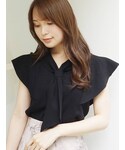 村岡愛美(MERCURYDUO)のニット/セーター「ボウタイ付ラッフルコンパクトニット」を使ったコーディネート