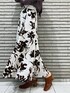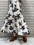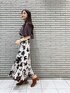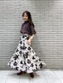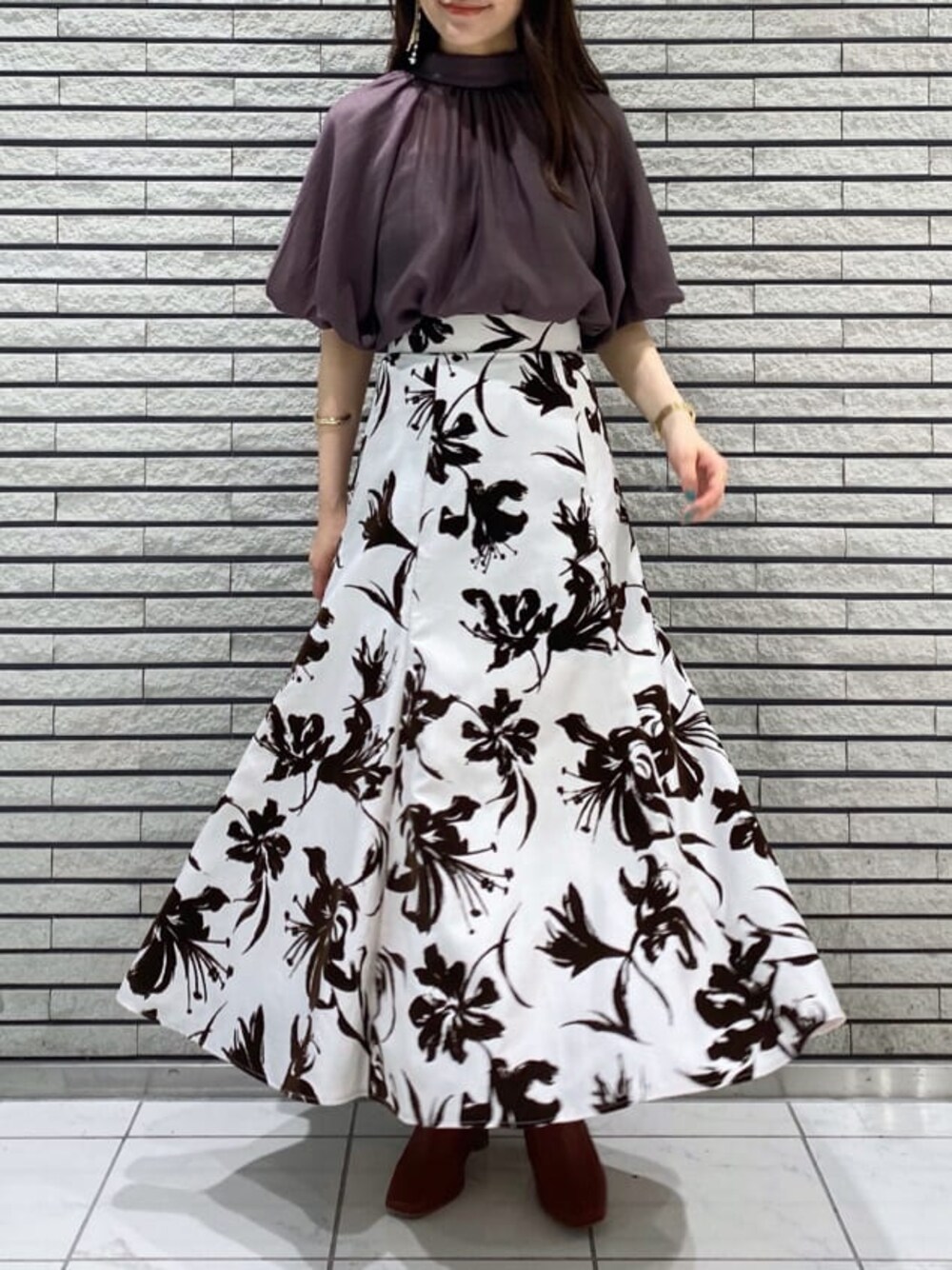 \秋先取り♪ クラシカルなスカートstyling♡/ ブラウス×フレアスカートの王道フェミニンコーデも、シックな秋カラーや大人っぽい柄を取り入れる事で甘くなりすぎずクラシカルな印象に♪ 赤みブラウンのサボサンダルでトレンド感もプラス⤴︎ デザインやカラーで秋らしさがありますが、軽やかな素材のブラウスとスカートなので、夏でもあまりお外に出られない日や晩夏〜ならデビューできる stylingです! 晩夏〜秋にかけてのお出かけに◎ 【ブラウス】 大きめリボン・ふんわりスリーブが特徴のシアーブラウス♡ インナーキャミがセットになっているので透け感を気にせず楽しめるのもPOINT☑︎ 前後2wayなので、フロントリボンでフェミニンに着こなしても◎ 【スカート】ナチュラルなワッシャー感のある光沢素材(国内生地)に マットなフロッキープリントでコントラストを付けたオリジナル素材を使用。 見た目は重厚感がありますが、軽い生地感で夏に着ても暑さを感じにくくなってます! たっぷりした贅沢なフレアラインが◎ 162㎝/Sサイズ着用で足首がしっかり見える丈感でした☑︎