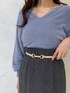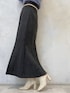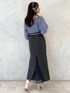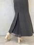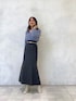 \くすみブルー×グレーの大人上品な秋コーデ♡/ 前回着用したスカートの色違いを、今回はバックプリーツで着用してみました♡(前後2WAYで前回はフロントプリーツで着用してます☑︎) 今回は付属のサスペンダーを取り外してシンプルに♪ スカートのダークカラーに映えるくすみブルーのふわふわニット・カチューシャ、白ブーツを合わせて、秋のお洒落カラーコーデに仕上げました♡ ゴールドのアクセサリー・ベルトの小物使いで更に大人っぽさをUP⤴︎ 涼しくなったらトレンチコートを合わせたきれいめコーデも◎ 秋の大人デートコーデ・お出かけコーデとしてオススメです! 【ニット】 今回はパフッとした長袖トップスver.で登場‼︎ (前後2WAYで衿ぐりのデザイン違いでの着こなしOK!)MERCURYDUO定番の、見た目にもフワフワ感が可愛くて、つい触りたくなる愛されニット♡ この質感なのに直接お肌に触れてもチクチクしないので、敏感肌の方にもオススメしたい一枚です。ご自宅で手洗いできてイージーケアなのも嬉しい☑︎ 丈短・デコルテすっきり見え・袖口とウエスト周りのリブ切替...メリハリのあるコンパクトシルエットで上半身を華奢に見せてくれます⤴︎ 【スカート】チュールをフロントにして華やかなスタイリングと、逆にしてバックスタイルにアクセントを効かせた大人っぽい着こなしを楽しめるスカート。 ハイウエスト・なだらかなマーメイドラインでスタイルアップ効果◎ 前回のstylingでは華奢なショルダー紐を付けて、トレンドライクなサスペンダースカートとしても着用してます! カラーによって生地や織り柄を変えているのもポイント! 162㎝/Mサイズ着用で、足首が見える丈感です☑︎