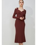 \赤みブラウンで秋ムードを楽しむ、トレンド×きれいめニットワンピ♡/ 一枚でパッと華やかで秋らしい赤みブラウンが目を引くワンピース♡ ゴールドアクセサリーとモカベージュのショートブーツ合わせで大人っぽく仕上げました! 秋のお出かけ〜女子会コーデに◎ 【ワンピース詳細】 フロントのツイストデザインがポイントのニットワンピース。 柔らかくて着心地抜群◎ フロントで交差した襟と袖は別々に動かせて、オープンショルダーでも着ることができます☑︎ ハイウエスト切替・ 細めのリブ編み・スカート部分は程よく体に沿い、裾がひらっと広がるマーメイドライン...メリハリあるシルエットに見せてくれる拘りが詰まっていてスタイルアップ効果◎ 162㎝/Mサイズ着用でふくらはぎ下くらいの丈感で、 MERCURYDUOの平均丈より短いので 低身長さんにもオススメです!