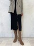 \大人が楽しむ秋のトレンドジャケットstyling♡/ ベーシックな黒ニットワンピースにチェック柄ジャケットとロングブーツで、秋らしいアクセント・トレンド感を加えたコーデ♡ すっきりしたアップヘア・華奢なゴールドネックレスで、クラシカルに大人っぽくまとめました! 秋のお出かけコーデとして、いかがでしょうか?☺︎ 【ジャケット】 ゆったりとしたボックスシルエットがトレンド感あるジャケット。 袖ぐりも余裕があるので、厚みのあるニットも着込めます♡ 軽くて柔らかい素材なので、ジャケットでも硬さがななく着疲れしないのがPOINT!少ししっかりしたニットカーディガン感覚で羽織って頂けます☑︎ 【ワンピース】 ストンとしたIラインのニットワンピースはベーシックながら、セーラーカラー・アシンメトリーの衿ぐり・釦ディティールがPOINTになってます! 私は大人顔・骨格ストレートで甘くなりがちはセーラーカラーは苦手itemですが、直線的なラインと広めのデコルテ開きで甘さ控えめなので違和感なく着れました! フロントスリットを活かしてデザインブーツを合わせるとオシャレな印象に♪ 162㎝/Mサイズ着用でふくらはぎ下くらいのスッキリ丈で、低身長さんにも◎ 【ブーツ】 バックレースアップデザインが新鮮な、トレンド感あるミドルブーツ。 フェイクスエードで履き心地も柔らかく、7.2㎝ヒールを感じさせない安定感も◎ 美脚に見える拘りシルエットでミニ丈にはもちろん、ロング丈のスカートやワンピースとの合わせも今年らしく決まります! 足のサイズ23.5㎝/幅・甲が標準の私は36サイズがピッタリでした☑︎
