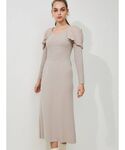 \スタイルアップが叶うきれいめニットワンピ♡/ ピンクベージュのニットワンピースとモカベージュのショートブーツで、テンションの違う柔らかベージュ合わせのワントーンコーデ♡ 女性らしいボディーラインを演出してくれる一枚は、 デートコーデとしても◎ 【ワンピース詳細】 ベースはストンとした縦長シルエット・ロング丈で大人っぽく、パワショルデザインがアクセントになった一枚です! パワショルは肩口にボリュームが出過ぎず、裾に向かってドレープが寄るデザインなので 骨格ストレートの私もスッキリと着こなせました☺︎ カシュクールデザインやウエストリブ切替でメリハリをつけているのもPOINT♪ 伸縮性あるリブニットでピタッとなりすぎず、動きやすいのも◎ 162㎝/Mサイズ着用でショートブーツがしっかり見えるくらいのスッキリ丈なので、低身長さんにも◎