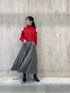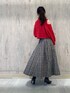 \気分も上がる⤴︎アクセントカラーを取り入れた秋コーデ♡/ 鮮やかな赤ニット(表記はピンクですが、ほんのり青みを感じられる鮮やかな赤です)を主役にしたコーディネート! ベージュ〜ブラウン配色のチェック柄スカートとダークブラウンのショートブーツで、秋ムードたっぷりに仕上げました♡ 華やかなカラーコーデは日常〜お出かけまで、気分を上げてくれること間違いナシ♪♪ 【トップス】ベーシック〜アクセントカラーまで、カラーバリエーションが豊富なのも魅力的♡オープンショルダーデザインがオシャレなフワッとした風合いのニット。 ゆるっとしたサイジングですが、短丈でスッキリと着こなせます☑︎ハイウエストのボトムと相性が良く、脚長効果も◎ 【スカート】 MERCURYDUOオリジナルのチェック柄がキャッチーなタックフレアスカート。 配色サテンリボンのバックレースアップがお洒落+絞ってウエストのサイズ調節も可能なのが嬉しい♡ シャカっとしたナチュラルなワッシャー感があるメモリータフタ素材は、座りシワなども気にせずに着用できるのも◎ 162㎝/Sサイズ着用で足首がしっかり見える丈感でした☑︎