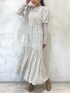 \春・秋・冬の3シーズン楽しめる🌷🍁❄️ 大人クラシカルワンピース🤍/ 透け感のないクレープデシン素材で、 シーズンレスに着用できるのが魅力の一枚! 春はニットガウン合わせでゆるっとフェミニン。 秋はジャケット合わせでよりクラシカルに。 冬は2つ前の stylingのように、カラーコート合わせも◎🧥💚 羽織りや小物合わせ次第で着こなし幅も自由自在🙌 【ワンピース】 パフスリーブでクラシカルに♪ 繊細な小柄がプリントされたシャラっとした生地のワンピース。 前後2WAYでボウタイを前にしてフェミニンに、 スリットデザインを前にしてトレンドライクにも着れるデザイン🙆♀️ 上身シャーリングゴムは伸縮性があり、 スッキリ細身に見せてくれつつストレスフリーな着心地☁️ 横ファスナーで着脱もしやすくなってます! 162㎝/Mサイズ着用で足首が見える丈感です☑︎ 【シューズ】 私が今季1番お気に入りなショートブーツ♡ バックシャンなクリアヒールがPOINTで 重くなりがちな冬のコーデにも抜け感を演出❄️ 柔らかなストレッチレザー・安定感ある6㎝ヒールで疲れ知らずなところが推し♡ 23.5㎝/足の幅・甲が標準の私は36サイズがピッタリでした👣