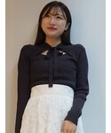 村岡愛美(MERCURYDUO)のニット/セーター「2WAYリボンカットアウトロングスリーブリブニット」を使ったコーディネート
