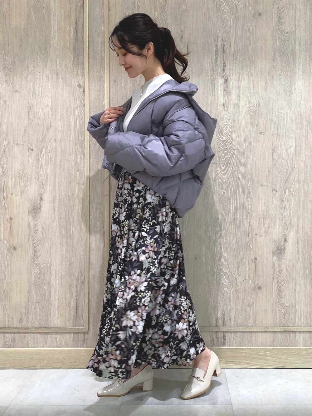 \年末年始のお出かけにも◎フェミニン×カジュアルstyling💐/ 着映えワンピース ×軽くて暖かなショートダウン ×歩きやすいローファー。 冬のお出かけに嬉しい、 暖かさ・動きやすさも叶う大人フェミニンstyling💓 【ワンピース】 リブニットトップスと花柄の布帛スカートのドッキングワンピース✨ ハイウエスト・コルセット風の切替・パイピング・バックシャーリングゴムと ウエスト部分にPOINTが集まっている事でスタイルUP効果◎ (更にウエストマークできる共布ベルト付きですが、私は大人っぽく外してスッキリ着こなすのが好みです👀) スカート部分はセミフレアラインで腰回りスッキリながら華やかな印象に♪ (ボディーラインも拾いにくくなってます♡) バックファスナーでラクにお着替えできるところも嬉しい✔︎ 162㎝/Mサイズ着用で足首上くらいの丈感でした📏 【ショートダウン】 トレンド感ある大きめなダイヤキルトがアクセントになったショートダウン♦️ 裾が広がるテントシルエットで、 裾ドロストを絞ってコクーンシルエットにアレンジ🆗 フードを外す事もできて、首回りが暖かいようにスタンドカラーにもボリュームをもたせています。 袖口リブで防寒効果◎⛄️ パウダリーでほんのり艶っぽい表地が高級感もあり、 ご自宅で手洗い可能で取り扱いやすいのがPOINT✔︎ 【シューズ】 艶のあるガラスレザーを使用したローファー。 華奢なビット・メタルが組み込まれた5㎝ヒール・シャープなスクエアトゥで、洗練された足元に♪ 23.5㎝/足の幅・甲が標準の私は36サイズがピッタリでした👣