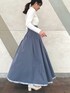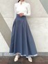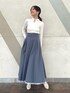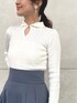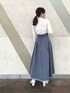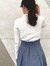 \春の爽やかカラーコーデ🤍💙🌷/ 4つ前のコーデでも更新したリバーシブルスカートの 色違いを裏面の無地ver.でコーディネートしました💙 ボリュームあるツヤっとしたフレアスカートと コンパクトなリブニット合わせで 春のお出かけが楽しくなるクラシカルコーデに🎼🎷 【トップス】 衿元の小さなゴールド釦がさりげないアクセントになったリブニット。 釦を上まで閉めたタートルネックスタイル、 前後逆に着たシンプルなタートルニット、 途中まで釦を開けたオープンカラースタイル、 全て開けてVネックにもできるマルチWAY👏 アイレットが入ったランダムリブ編みも拘り♡ コンパクトなのでジャンスカやキャミワンピ等のレイヤードにも◎ 【スカート】 トレンドのメッシュ素材に、水彩タッチのぼかしフラワーをプリントしたタックフレアスカート。 大花柄ですが微配色とぼかしがあるので 大人っぽく落ち着いた印象で着こなせます💐 更に裏地が無地タフタ素材になっていて、リバーシブルで着用できるのが最大のPOINT✔︎ 162㎝/Mサイズ着用で足首上の丈感でした📏 バックウエストゴムでウエストが幅広なので、 しっかりウエストで止まってくれて安定感がありました♡