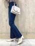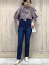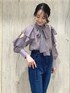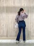 \大人フェミニンな春デニムstyling👖🌷/ くすみラベンダーのフェミニンブラウス ×深いインディゴカラーの美脚デニムで作る、 大人のフェミニン×カジュアルコーデ💜💙 【ブラウス】 シアー素材に袖ラッフルが女性らしく、 オープンショルダーも楽しめる2WAYブラウス! (インナーキャミ付きなのも高POINT✔︎) 更にリボンは取り外しもできて、シンプルな着こなしも🆗 デイリー〜華やかにしたいお出かけシーンまで 幅広く活躍してくれる一枚です♪ 【デニム】 MERCURYDUOらしい大人きれいめに着こなせる 美シルエットフレアデニムパンツ👖 ストレッチの効いた素材で履き心地も抜群! ハイウエスト+Dカンベルト付きで脚長効果◎ 162㎝/Mサイズ着用でくるぶし丈でした📏 ベルトでしっかりウエストマークもできるので ウエストが余る心配もないのが◎