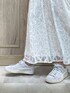 \ PUMA×MERCURYDUO スペシャルコラボレーション✨👟🤝 / コラボスニーカーを使った、究極に可愛いコーデを考えました♡ (次回更新する+トレンチコートを羽織ったコーデが完成系です! そちらも是非ご覧ください☺️) レースフレアスカートとスニーカーの、 王道フェミニン×カジュアルMIXコーデも、 MERCURYDUOの拘りitemにかかれば とびきりオシャレな印象に♪♪ 【スニーカー】 プーマを代表するスウェードスニーカー👟 プーマ人気モデル×MERCURYDUO別注カラーの 特別タッグで素敵なスニーカーが完成しました🤝 フルスウェードのアッパーとモダンなタッチが特徴で、 履き心地とファッション性を兼ね備えた大人女性に履いて頂きたい高品質な一足。 デイリー遣いには勿論、スニーカー通勤にもオススメです! 【トップス】 トレンドのデコルテ開き・チョーカー風のリボンデザインが効いたリブニット🎗 前後2WAYで着用できてバックシャンリボンにするのも◎ コーデによってアレンジできるのが嬉しいPOINTです☑︎ 私は骨格ストレートで薄手なピッタリニットだと肉感を拾いすぎる事がよくあるのですが、こちらは程よく厚みがあり着痩せして見えました♪ 【スカート】 大きなフラワーモチーフの配色レースが 大人可愛いフレアスカート♡ ハイウエスト・ウエストバックシャーリングゴムで ウエスト〜腰にかけてスッキリしていてスタイルUP効果◎ ウエストに程よくフィットしながら柔らかな素材で着心地もバッチリ👌 ひざ上からマチ切替でボリュームをもたせて、 動いた時にも絵になる一枚✨ 162㎝/Mサイズ着用で、足首が見えるくらいの丈感でした📏