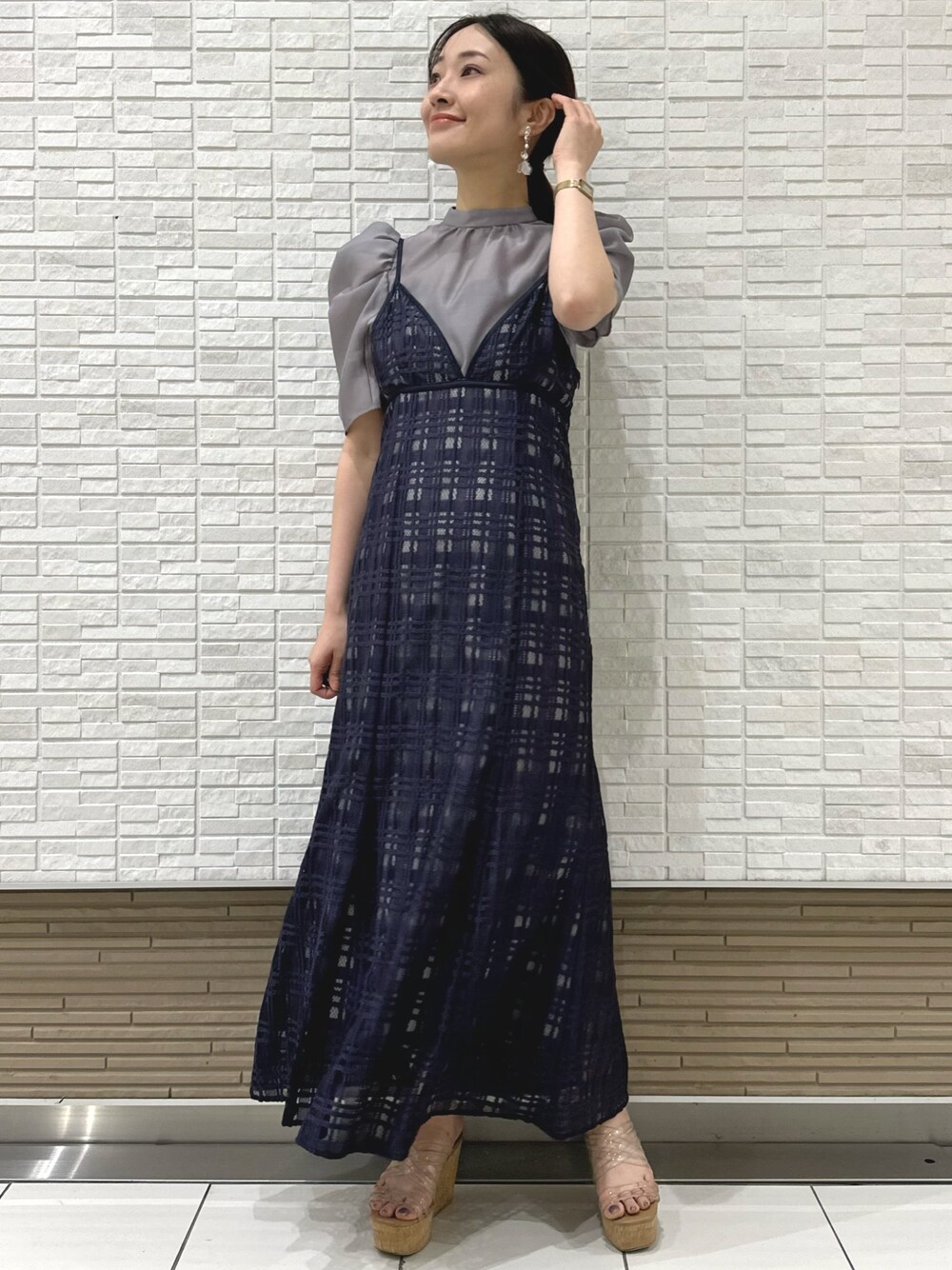 \着回し自由自在♪オシャレなセットワンピース💜/ くすみラベンダーのブラウス×ネイビーのキャミワンピースのセットitem✨ (カラー表記はパープルです☑︎) 春から秋にかけてしっかり着回せて 大人可愛く決まる、私のオススメitemです🌸🌻🍁 【ワンピース】 シアーなギャザースリーブのブラウスと 特別感あるキャミワンピースのセットで、 オシャレなレイヤードスタイルが即完成🫶 単品での着回しもできてシーズンレスに活躍してくれます⤴︎ キャミワンピースはチェックレースが華やかで、 艶のあるブラウスとのニュアンス配色が可愛い✨🎨 バックスタイルも華奢なリボンで抜かりなく🎀 キャミ紐に長めのアジャスター付きで、 幅広い身長の方に対応🆗 【シューズ】 夏のMERCURYDUO定番の通称"神サンダル"👡 身長もスラっと見えて デザイン性も合わせやすさも軽さも歩きやすさも... 全部叶う欲張りサンダルです! 23.5㎝/足の幅・甲が標準の私は36サイズがピッタリでした👣